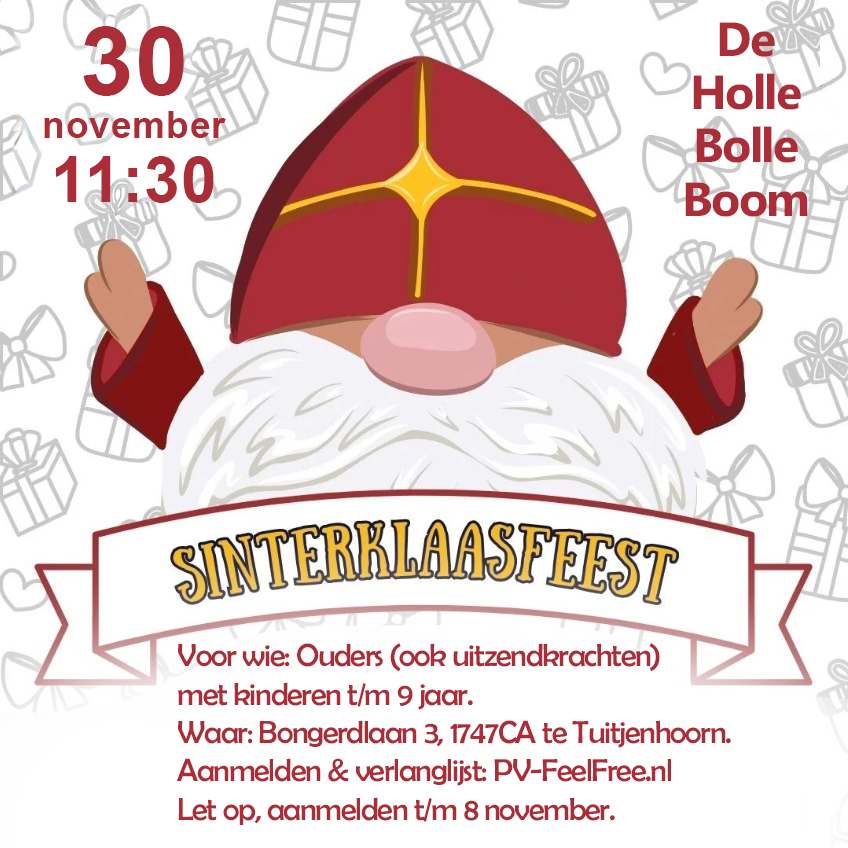Weer een prachtig Sinterklaasfeest bij de Holle Bolle Boom! Meld je aan voor het Sinterklaasfeest en vul het onderstaande verlanglijstje in voor een prachtig Sinterklaas cadeau!